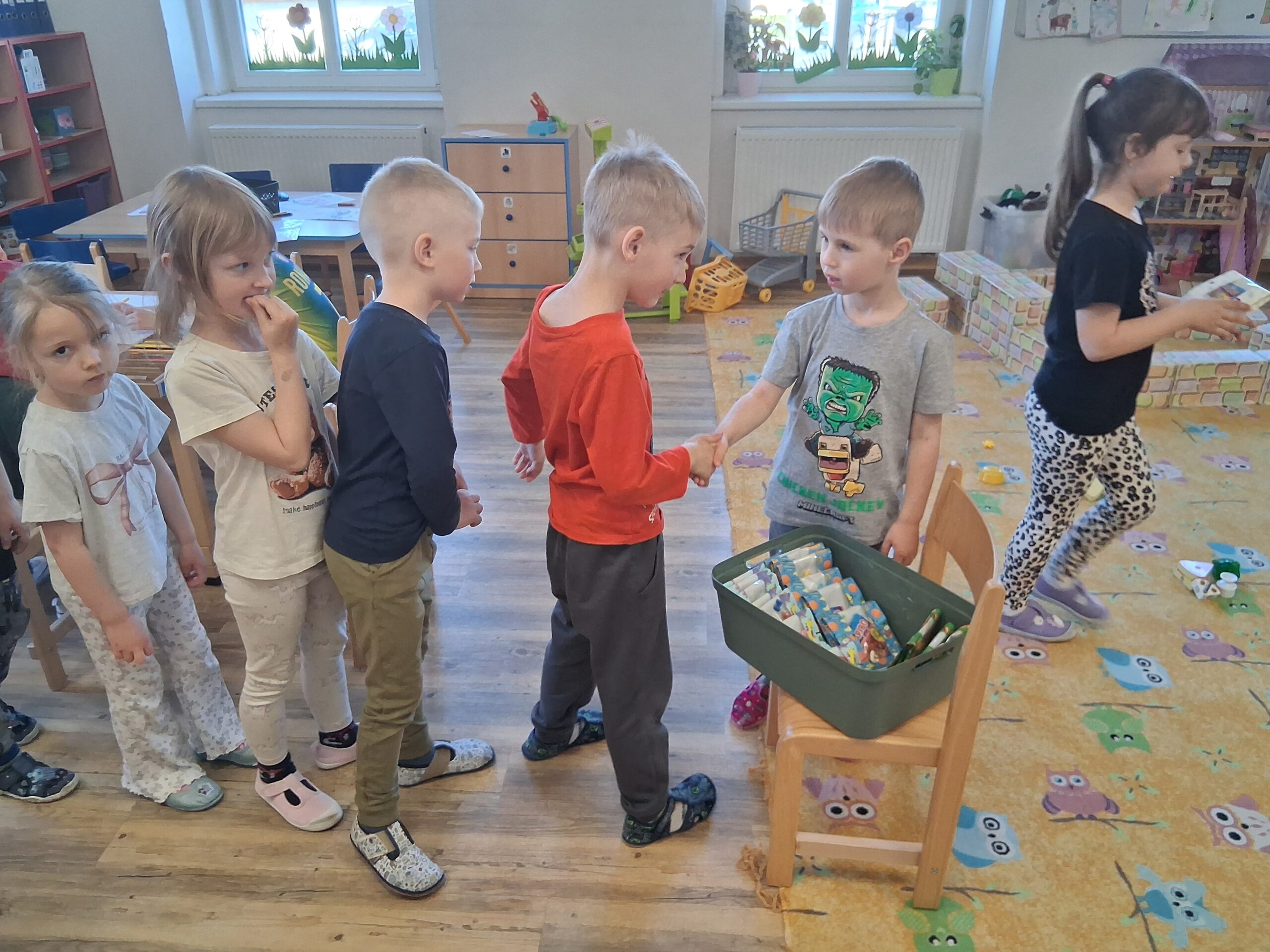 V průběhu týdne se děti sbližovaly se životním prostředím, o které je třeba pečovat. Děti získaly znalosti o tom, jak pomáhat naší Zemi a co ji naopak škodí. Tento týden také proběhly radostné oslavy narozenin a svátků. Venku jsme při slunečném počasí odkryli pískoviště a s tím i zábavné skotačení dětí.