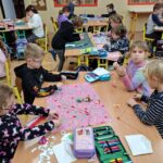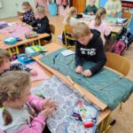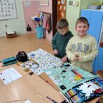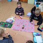 Druháci si procvičovali učivo o tělesech tím, že stavěli sněhuláky z koulí, učili se rozlišovat tvary a velikosti jednotlivých částí a spojovat je do celku.