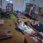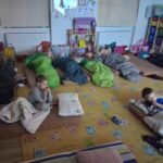 Na závěr dne se všichni uvelebili ve spacácích a užili si večerní kino, které příjemně zakončilo celý program. Unavení, ale spokojení předškoláci se poté uložili ke spánku.