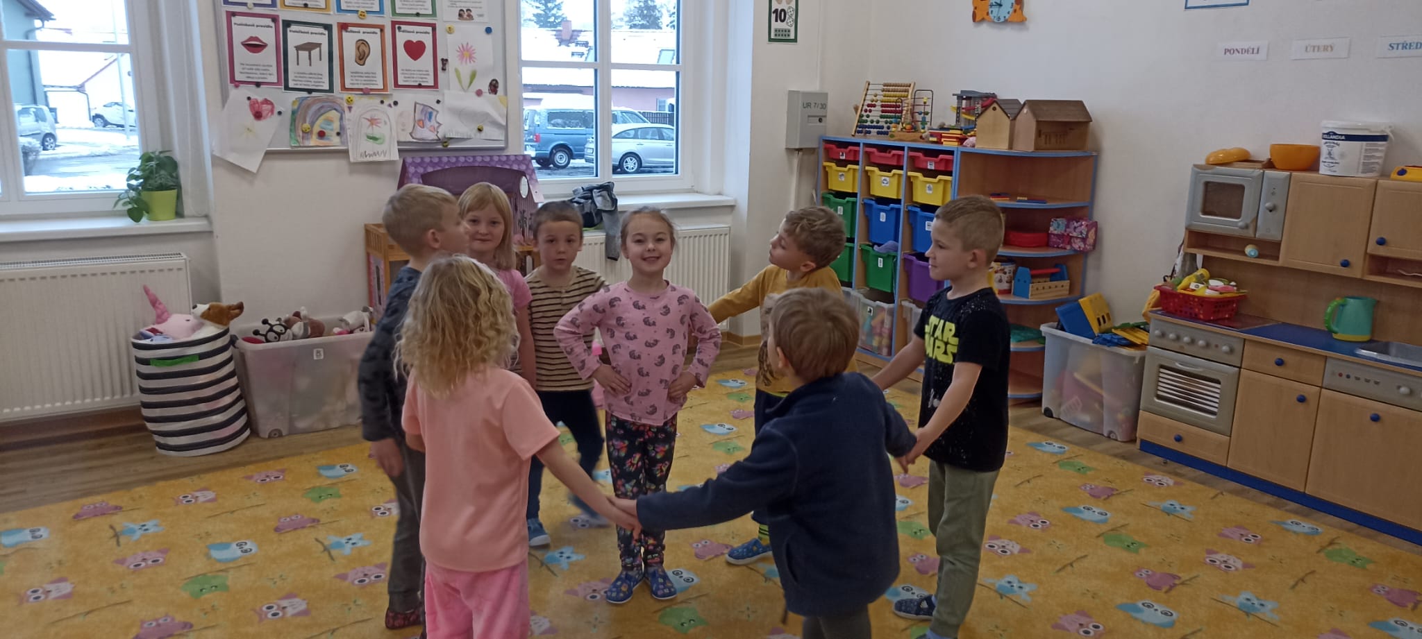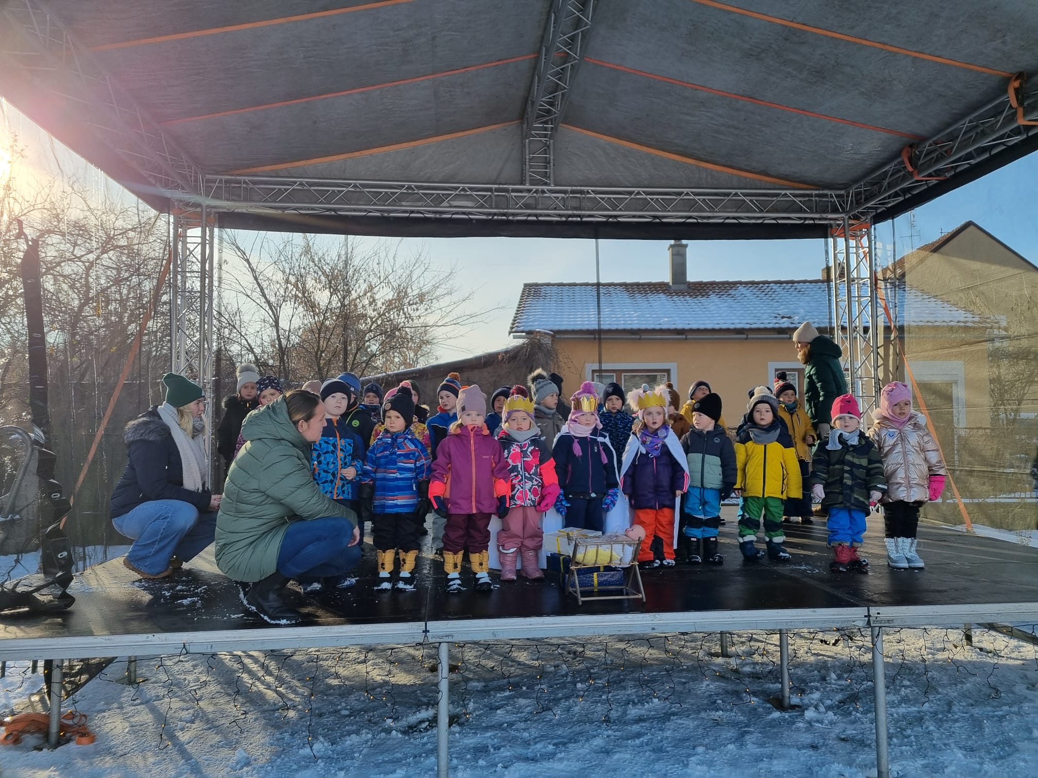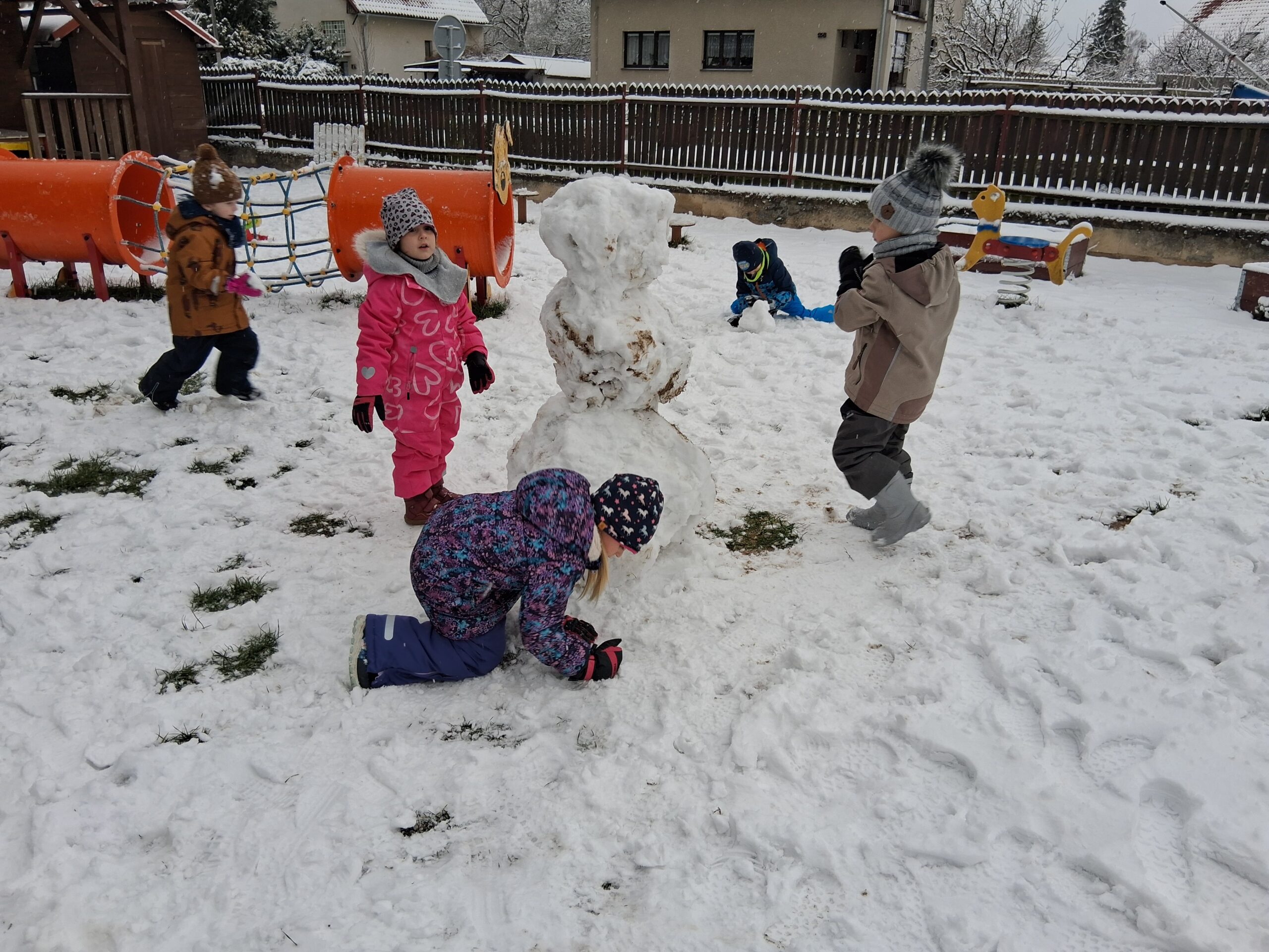 Uchýlení zvířátek k zimnímu spánku, vytváření jejich domečků a poznávání jejich životních potřeb k přezimování. S tímto se děti potýkaly celý týden. Venku děti radostně skotačily a užívaly si první sníh, ze kterého stavěly sněhuláky. Náš týden jsme zakončili přivoláním vánočních svátků na rozsvícení vánočního stromečku, kde velkým zážitkem pro děti bylo zpívat na pódiu.