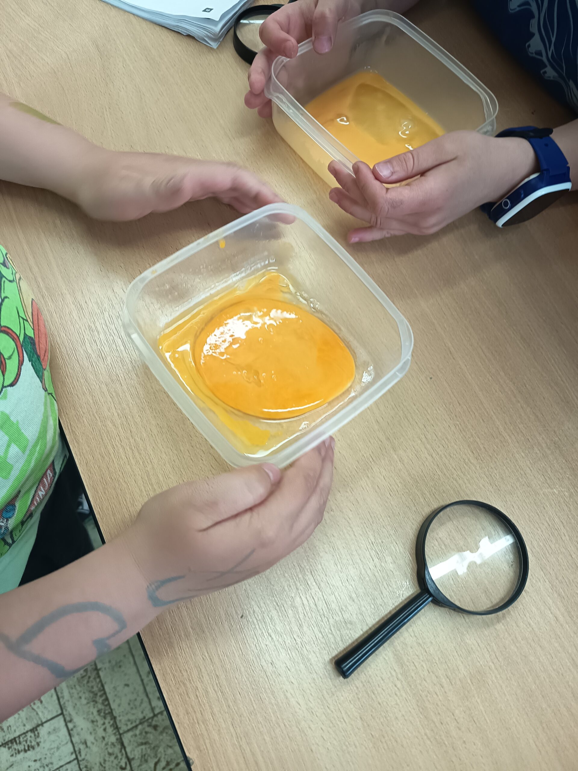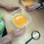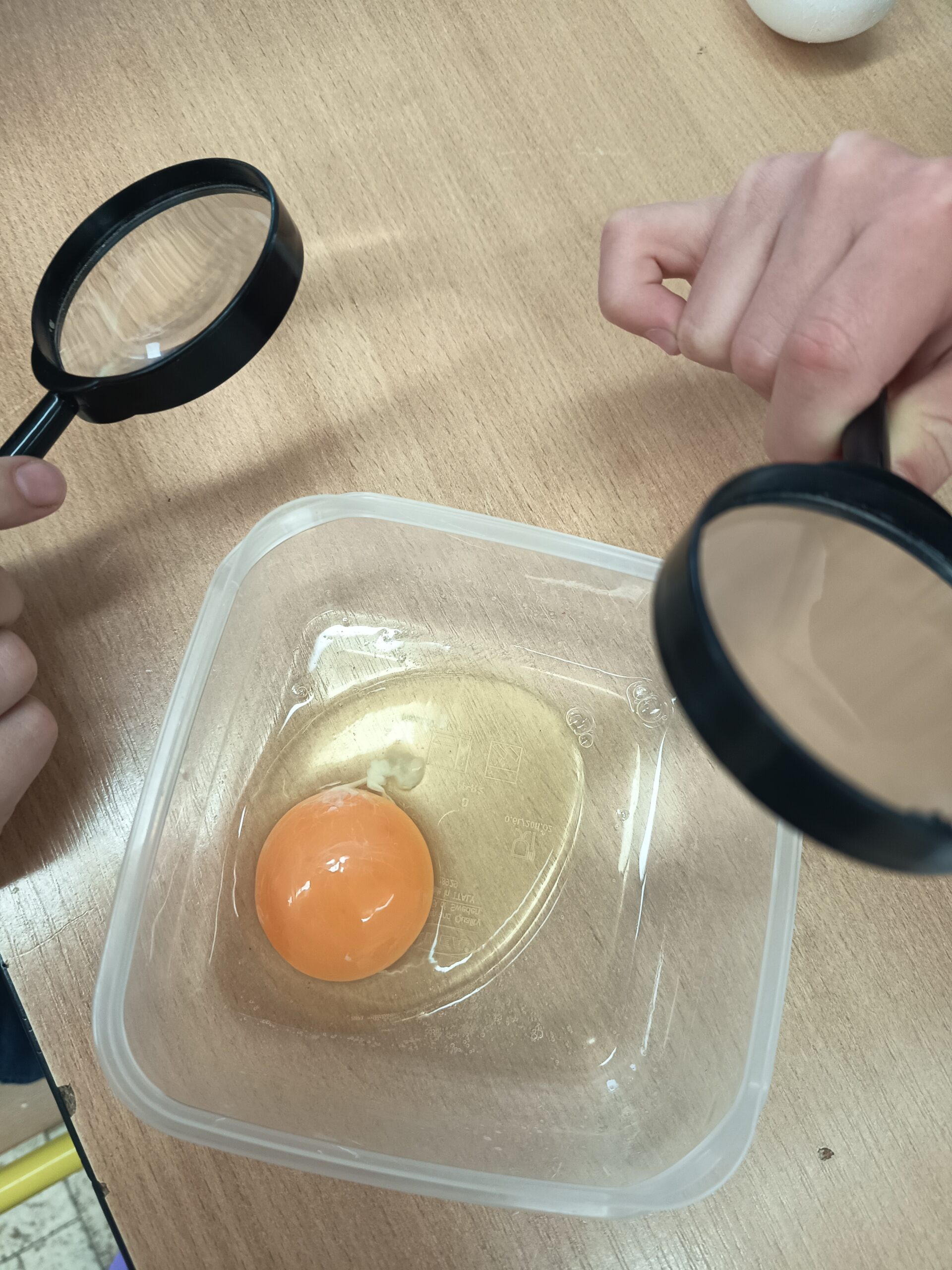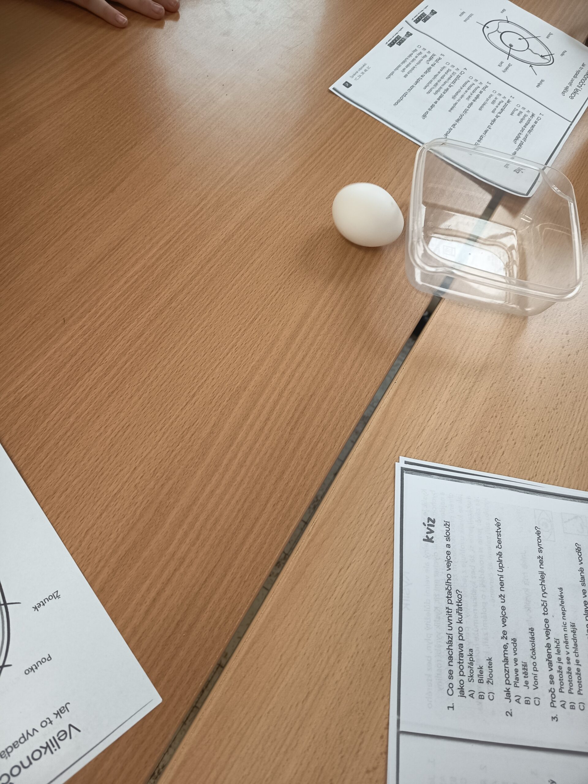 Dnes byla velikonoční lekce na kroužku Veselé vědy, pozorovali a zkoumali jsme části syrového vajíčka. Všechny části jsme si popisovali, sledovali jsme také působení octa na vaječnou skořápku. Velmi nás překvapilo, že čtyři vajíčka unesou více než kilogram zátěže, když ji dobře rovnoměrně rozložíme.