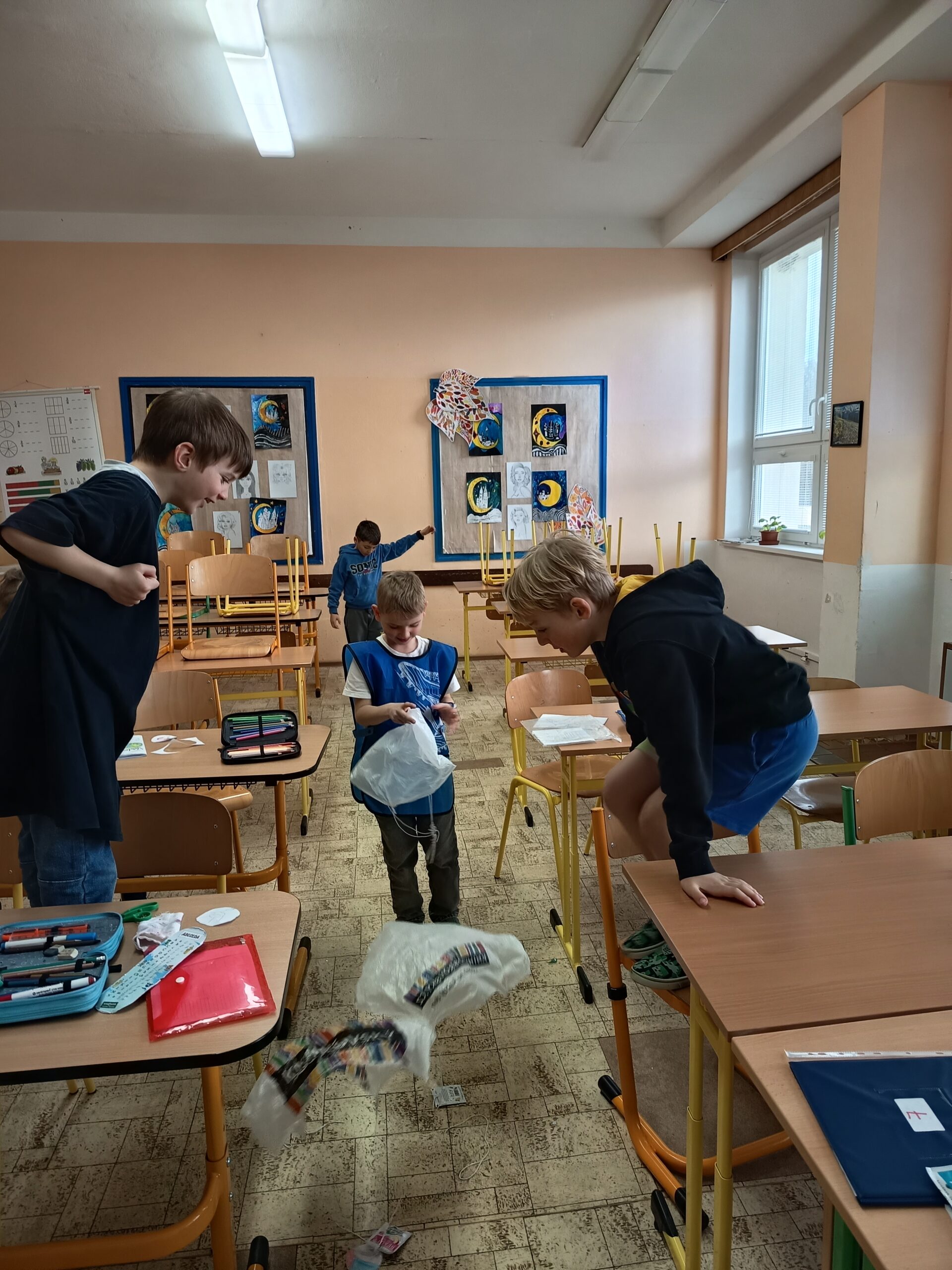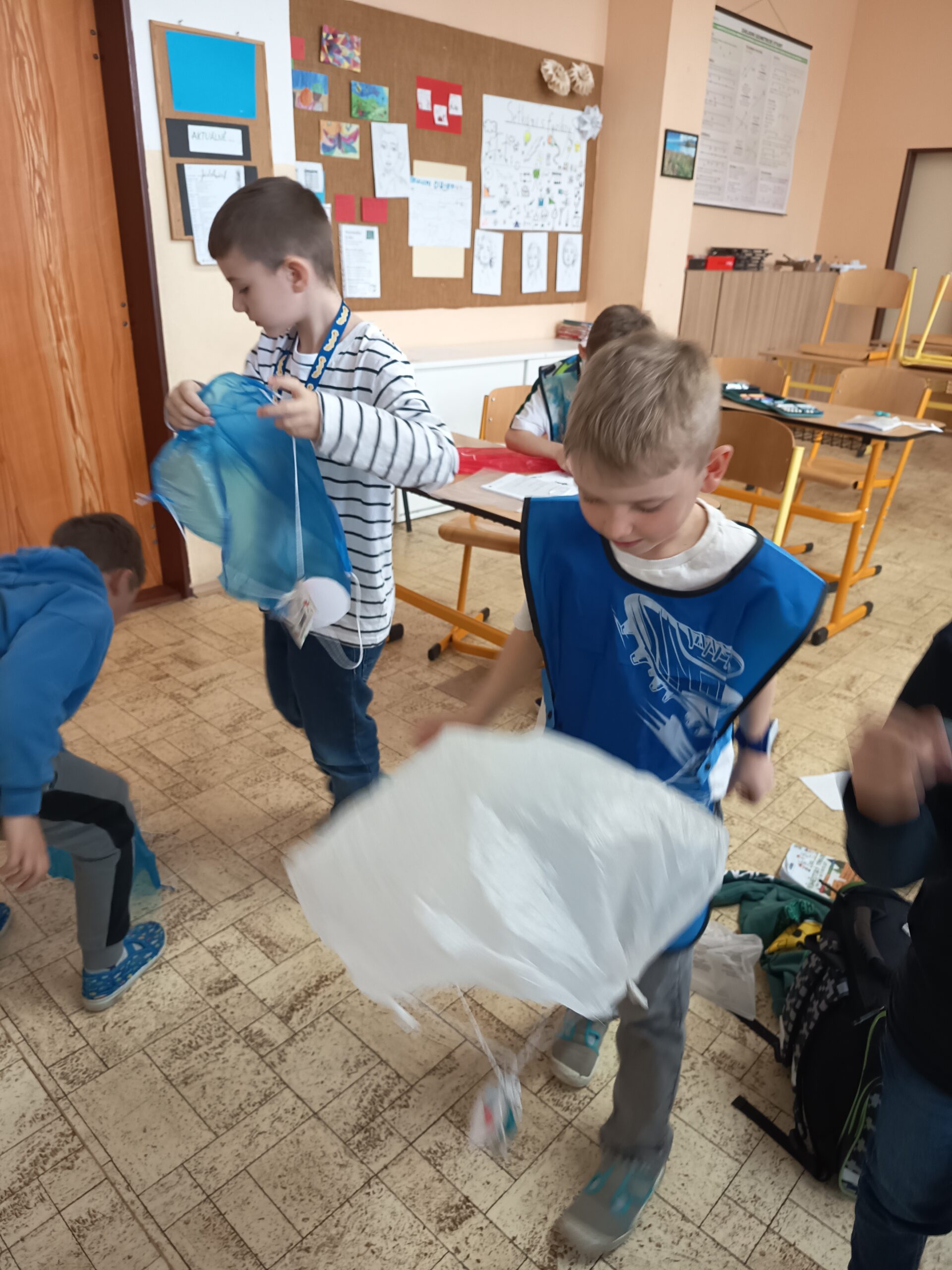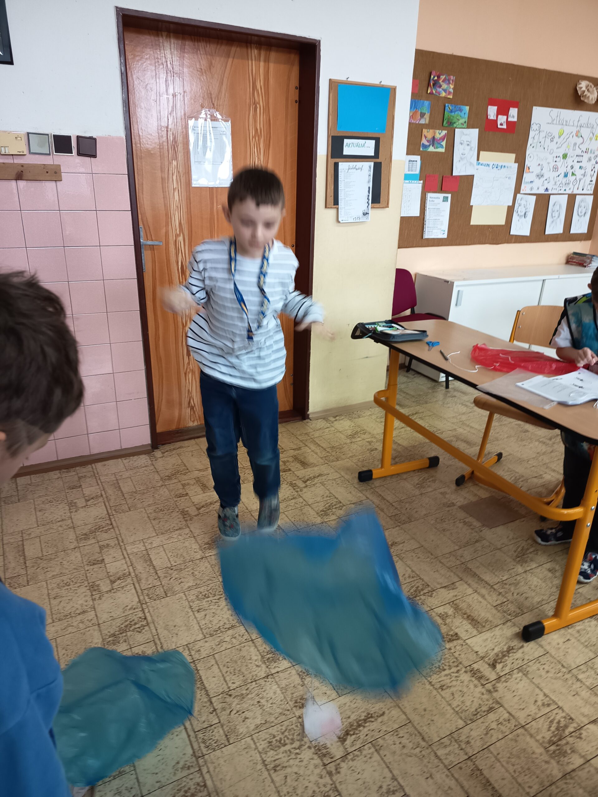 Dnešní hodina kroužku Veselé vědy se zaměřila na stíhací letouny, přetížení a také na atrakce na pouti. Nejprve jsme si o těchto tématech povídali a vysvětlili si, jak fungují. Poté si každý účastník vyrobil vlastní padák. Kluci zpočátku váhali, protože se jim to zdálo složité, ale nakonec všichni s nadšením zkoušeli, jak dobře jejich padáky fungují.