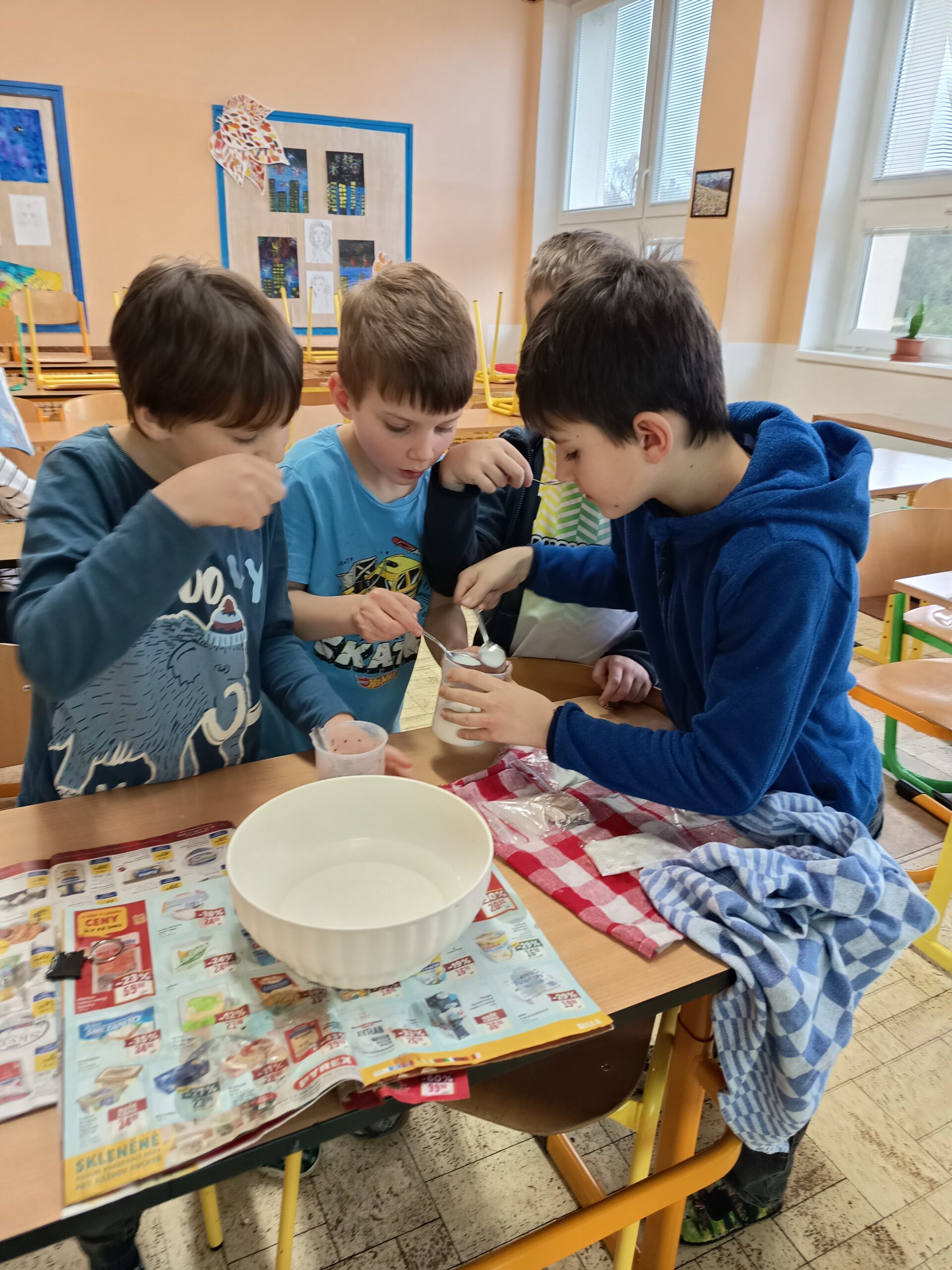 Veselovědníci uzavřeli první pololetí svou čtrnáctou lekcí. Společně jsme se pustili do výroby čokoládové a vanilkové zmrzliny. I když se nám nepodařilo směs zcela dokonale zmrazit, výsledek byl překvapivě lahodný. Za svou aktivitu během celého pololetí si účastníci tohoto cyklu odnesli domů malý přívěsek ve tvaru zkumavky jako odměnu.
