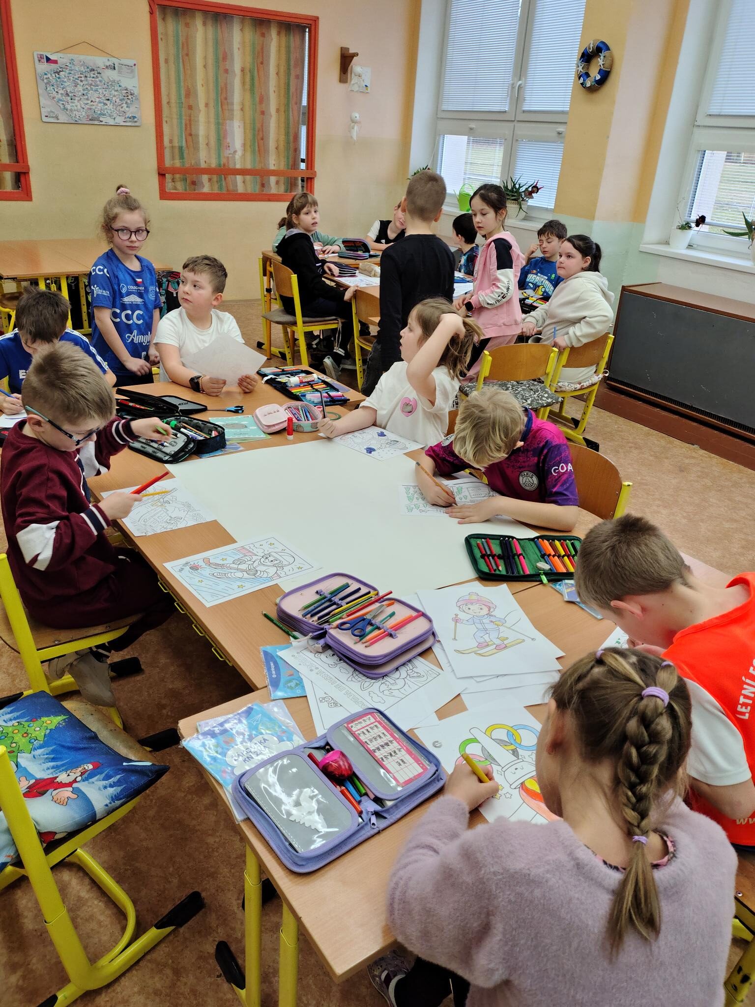 Dnešní vyučování ve 2. třídě proběhlo ve znamení zimních olympijských her inspirovaných letošními OH v Itálii. Žáci byli rozděleni do tří týmů a společně spolupracovali na různých úkolech napříč předměty.